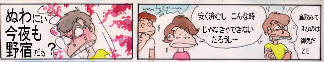 野宿とは言えちゃんと施設が整備されてるキャンプ場です。なんとかFも矛を納めましたが。